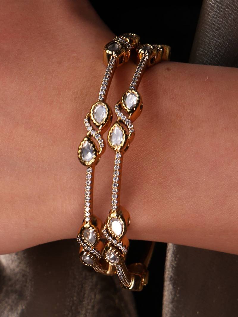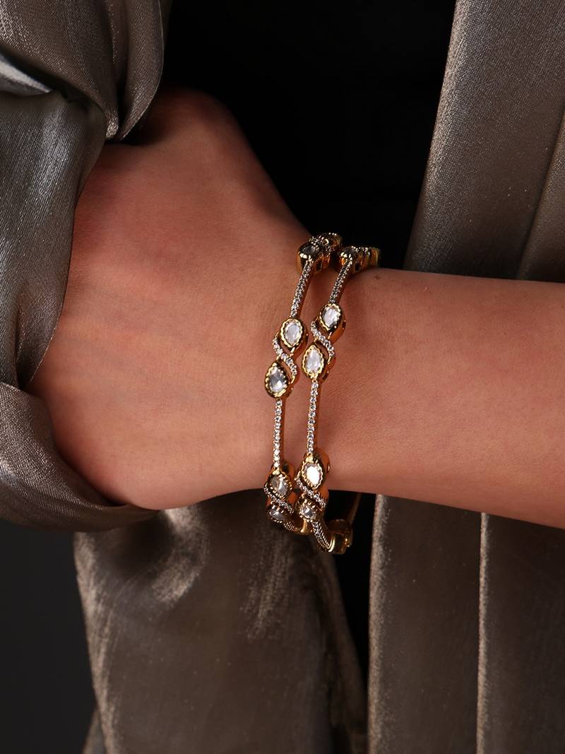 | Product Description | These Twilight Grace Bangle Set Shines With Delicate Detailing And Crystal Stones. Elegant Yet Versatile, It Adds A Regal Charm To Your Wrists, Perfect For Festive, Bridal, Or Daily Wear.
