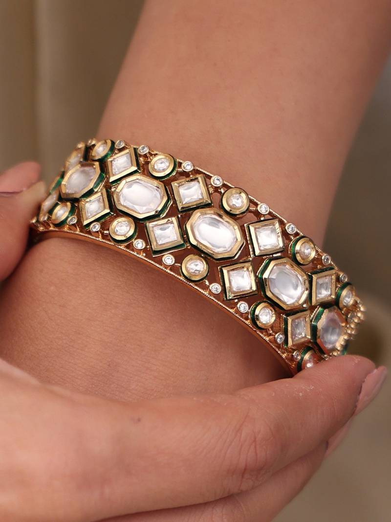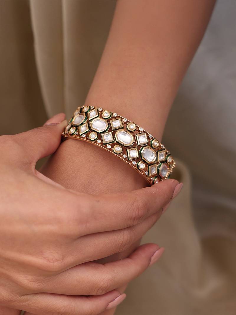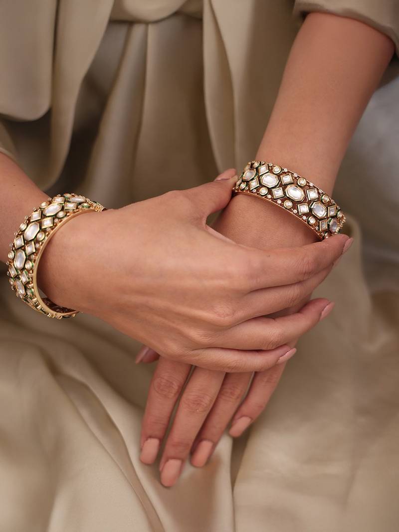 | Product Description | Crafted With Artistry, The Golden Halo Bangle Set Shines With Crystal Stones And Golden Charm. A Symbol Of Tradition And Style, These Bangles Enhance Your Presence On Every Special Occasion.