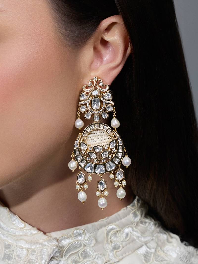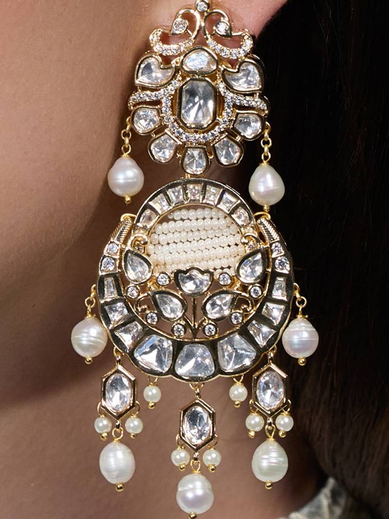 | Product Description | Stunning Pearl Kundan Circular Drop Earrings Offering Timeless Elegance For Weddings, Festivities, And Traditional Celebrations.