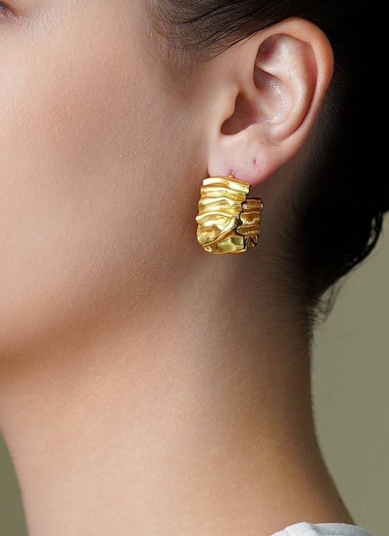| Product Description | Timeless Design With Modern Artistry, Our Textured Gold Hoop Earrings Have Rich Golden Detailing. Bring Effortless Elegance To Festive, Casual Or Fusion Fits!