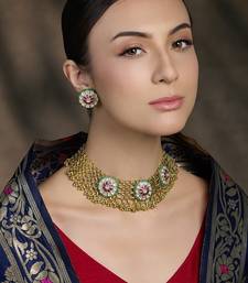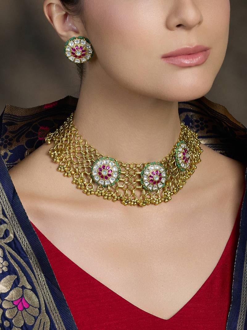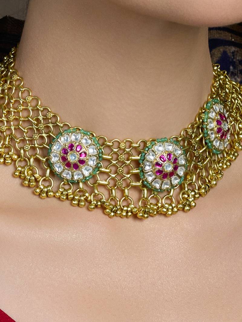 | Product Description | Elegant Gold Plated Necklace Set Ornamented With Floral Kundan Motifs And Pink Stones. Ideal For Festive Celebrations, Weddings, And Cultural Occasions.