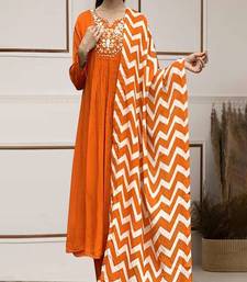 Saffron viscose chanderi silk gown pant with dupatta stitched