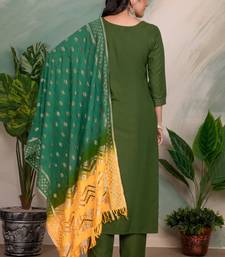 | Product Name | Green Roman Silk Fabric Embroidery Work With Printed Festive Special Readymade Suit | |