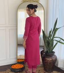 Pink viscose rayon fabric designer embroidery work with printed festive wear salwar suit stitched