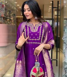 | Product Name | Purple Colour Viscose Chanderi Fabric Partywear Ready Suit With Embroidery Work | |