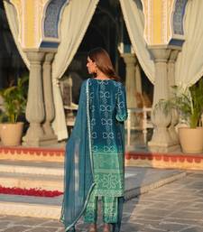Rama beautiful designer embroidery work with printed chinon silk fabric suit stitched