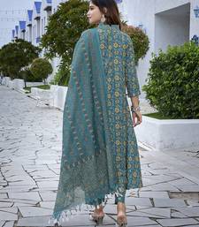 Teal blue sophisticated viscose fabric designer printed girlie suits stitched