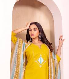 | Product Name | Yellow Roman Silk Fabric Embroidery Work With Printed Festive Special Readymade Suit | |