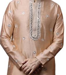 Beige embroidered art dupion silk kurta-pajama