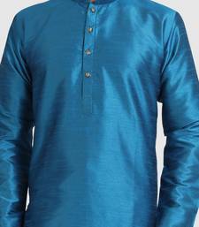 Blue plain art dupion silk kurta-pajama