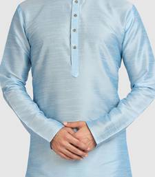 Turquoise plain art dupion silk kurta-pajama