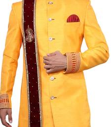 | Product Name | Yellow Embroidered Art Dupion Silk Sherwani | |
