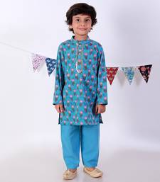 | Product Description | Add Some Color To Your Kids' Ethnic Wardrobe With This Blue Kurta Pyjama Set That Is Perfect For Every Occasion. Crafted With Soft Cotton Fabric, This Pajama Set Is Very Comfortable And Leaves Room For Breathability. Its Unique, Colorful Print Adds A Pinch Of The Contemporary Trend To Traditional Attire, Making It A Versatile Outfit. Shop This Cotton Printed Kids Kurta Pajama And Get Ready To Embrace Tradition At Traditional Weddings, Religious Ceremonies, And Festive Occasions. |