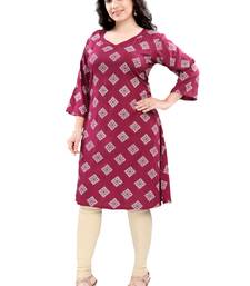 | Product Description | Wine Rayon Printed Long Kurti, Can Be Paired On Casual Occasions |