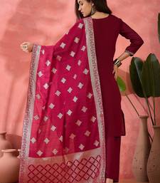 Women's magenta colour kurta set pants stitched and woven dupatta set