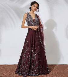 | Product Description | Shimmer And Shine With Extraordinary Grace In Our Merlot Separates. This Royal Wedding Attire Has A Delicately Embellished Lehenga With Floral Motifs Made Of Beads, Sequins And Tubes. While The Sleeveless Choli Is Further Accentuated With 3d Roses And Paired With An Embroidered Net Dupatta That Completes This Mesmerising Mien. |