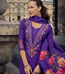 purple viscose silk floral & leaf embroidered straight kurta with pant & dupatta stitched