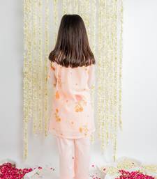 This Peach Printed Cotton Kurta Set Is A Charming Blend Of Comfort And Style. Made From Soft, Breathable Cotton, The Kurta Features Subtle All Over Prints That Lend A Graceful Appeal. Paired With Matching Bottoms, It's Perfect For Casual Outings, Daytime Festivities, Or Relaxed Celebrations With A Touch Of Elegance.