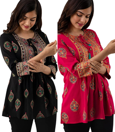 Pack of 2 indian handmade block printed rayon fabric designer tops & tunics for bottomwear & jeans