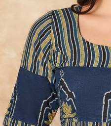 Blue hand block printed ajrakh pure cotton readymade blouse