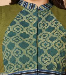 Green batik hand block printed pure cotton stand collar readymade blouse