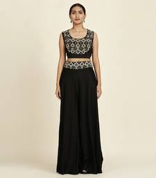 | Product Description | Hand Embroidered Bib Yoke Blouse, Hand Embroidered High Waist Flared Pant And A Cape With Hand Embroidered Cutwork Border. |