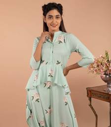| Product Description | Mint Green Adriatic Mist Peplum Dhoti Jumpsuit Is A Size Adjustable Dhoti Jumpsuit With A Peplum, Hides The Stomach And Gives A Slimmer Look . |