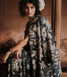| Product Description | A Navy Blue Pre Stitched Saree Set That Evokes The Charm Of A Bygone Era. The Romantic Saree Features Our Signature Roop Flip Bird Print, Featuring A Pair Of Birds In Their Enchanting Habitat With Hand Embroidery Highlights On The Pallu. The Blouse Is Hand–Embroidered And Makes The Print Sing. The Look Is Complete With A Delicate Printed Hand Embroidered Silk Jacket.