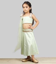 | Product Description | Green Zig Zag Print Choli With Gold Lame Frill Strips Going Back From Front And Gold Lame Flower In Front, Zig Zag Print Ghagra With Gold Girgiri Strip Below Waist, Green Net Dupatta With Gold Lame Flower And Crystel Attach In Middle Of Flower, Use Cotton Lining , Material: Printed, Gold Lame, Net, Cotton Lining , Colour: Green, Gold , Wash Care: Dry Clean. |