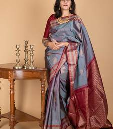 Grey and maroon combination saree with silk mark certified