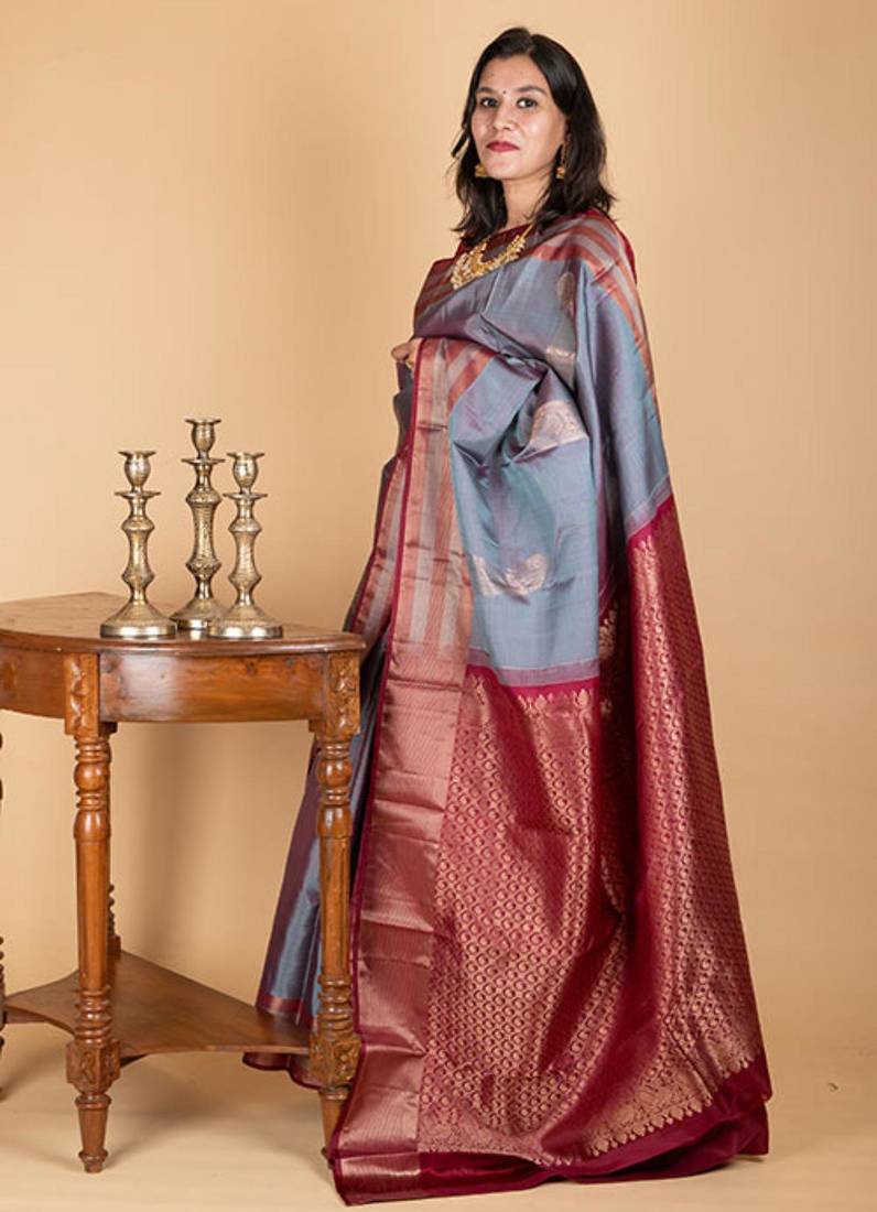 | Product Name | Grey And Maroon Combination Saree With Silk Mark Certified | |