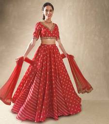 | Product Description | " Features A Hibiscus Red, Linen Satin Bandhani Lehenga Set. The Lehenga Comprises Of Varying Bandhani Patterned Layers Of Fabric. Teamed With A Matching V Neck Blouse With Dori, Pearl, Mirror And Sequin Embroidered Borders On Neckline, Hem And Sleeves. A Matching Red Net Dupatta With Embroidered Cutwork Border Completes The Look. Cancan & Pockets Are Included.