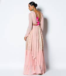 | Product Name | Peach Chanderi Silk And Georgette Woven Dilkash Saree Gown With Belt | |
