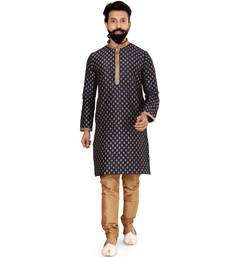 | Product Name | Men Dark Navy Blue Dupion Silk Khari Printed Kurta Churidar Set | |