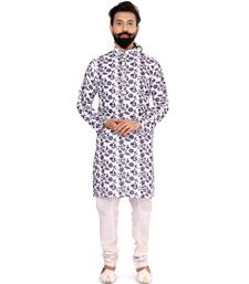 Men off white cotton digital printed kurta churidar set