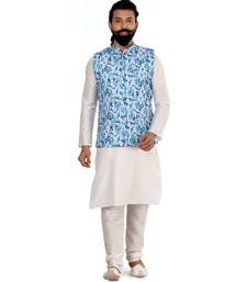 | Product Name | Men Off White Cotton Printed Nehru Jacket With Plain White Dupion Silk Kurta Churidar | |