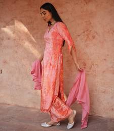 | Product Description | Millennial Pink Long Kurti Having Petal Shape Sleeves Highlighted With Pearls. Comes With Straight Fit Pants And Dupatta Having Embroidered Motifs Scallop Borders. |