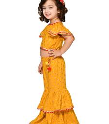 Saka designs girl mustard top and sharara with lace detailing and tassels