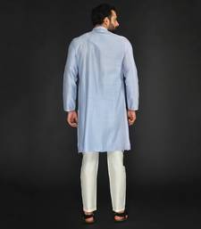 | Product Description | Lt Blue Machine Thread Embroidery Kurta Paired With Spun Silk Chudidar Bottom. . |