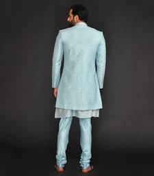 | Product Name | Powder Blue Mirro Textured Embroidery Indo With Vis. Silk Kurta Paired With Slim Pant | |