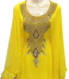 Yellow embroidered georgette stitched islamic farasha