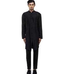 Black plain silk kurta set