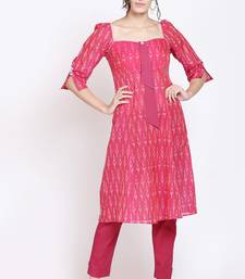 | Product Description | Berry Pink Ikat Kurta Has Elasticated Elbow Length Slit Sleeves And Can Also Be Worn Off Shoulder And Features A Faux Bowtie .It Is Paired With Easy To Move In Ankle Length Cotton Lycra Pants . This Piece Is Handcrafted By Ikat Artisans , To Create Sustainable Yet Stylish Piece . |