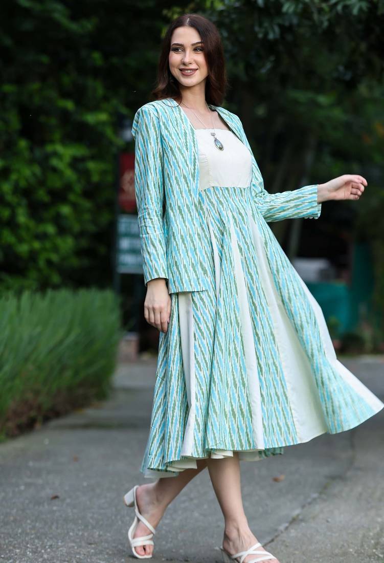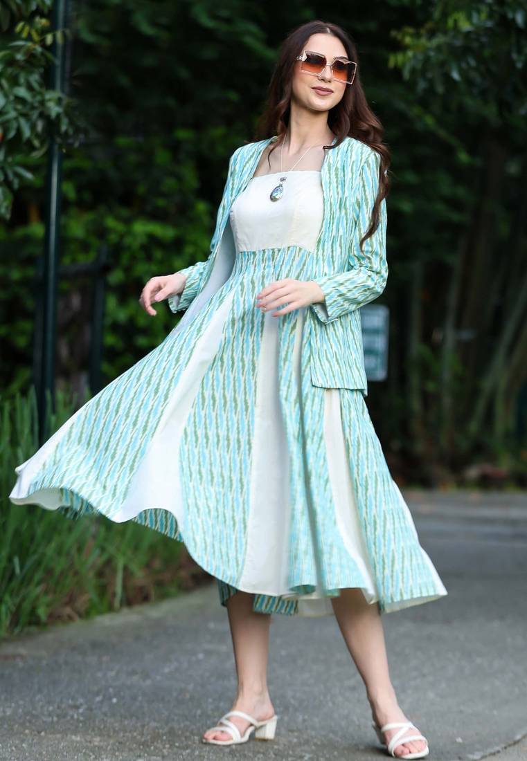 | Product Description | A Line Panelled Ikat Jade Dress With Adjustable Shoulder Straps And Side Zip Closure ,Made Of Handcrafted Cotton Ikat Fabric . This Dress Can Be Paired With Our Jade Ikat Jacket For Your 9 To 5 Commitments & Worn As A Perfect Casual Dress For An Evening Of Fun And Twirling . |