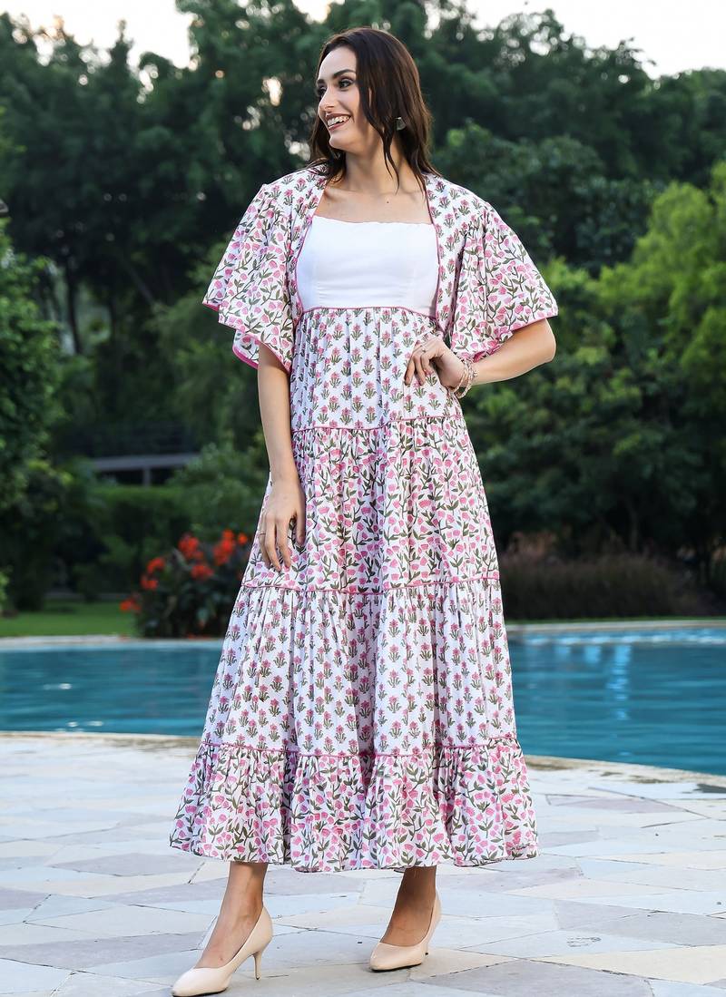 | Product Name | Sanganeri Floral Tiered Maxi Dress With Shrug | |