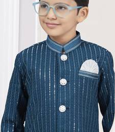 | Product Name | Blue Imported Silk Sherwani With Silk Dupion Dhoti For Kids | |
