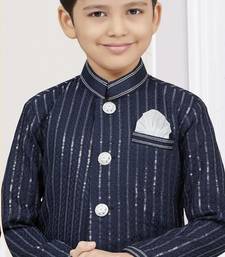 | Product Name | Blue Imported Silk Sherwani With Silk Dupion Dhoti For Kids | |