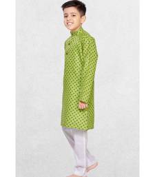 Green boys printed cotton kurta suit