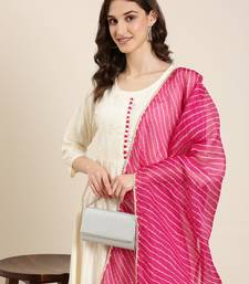 Women's ankle length round neck cream floral anarkali kurta comes with duppatta