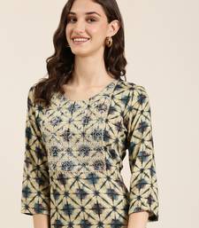 | Product Name | Women's Calf Length Round Neck Beige Geometric Straight Kurta | |
